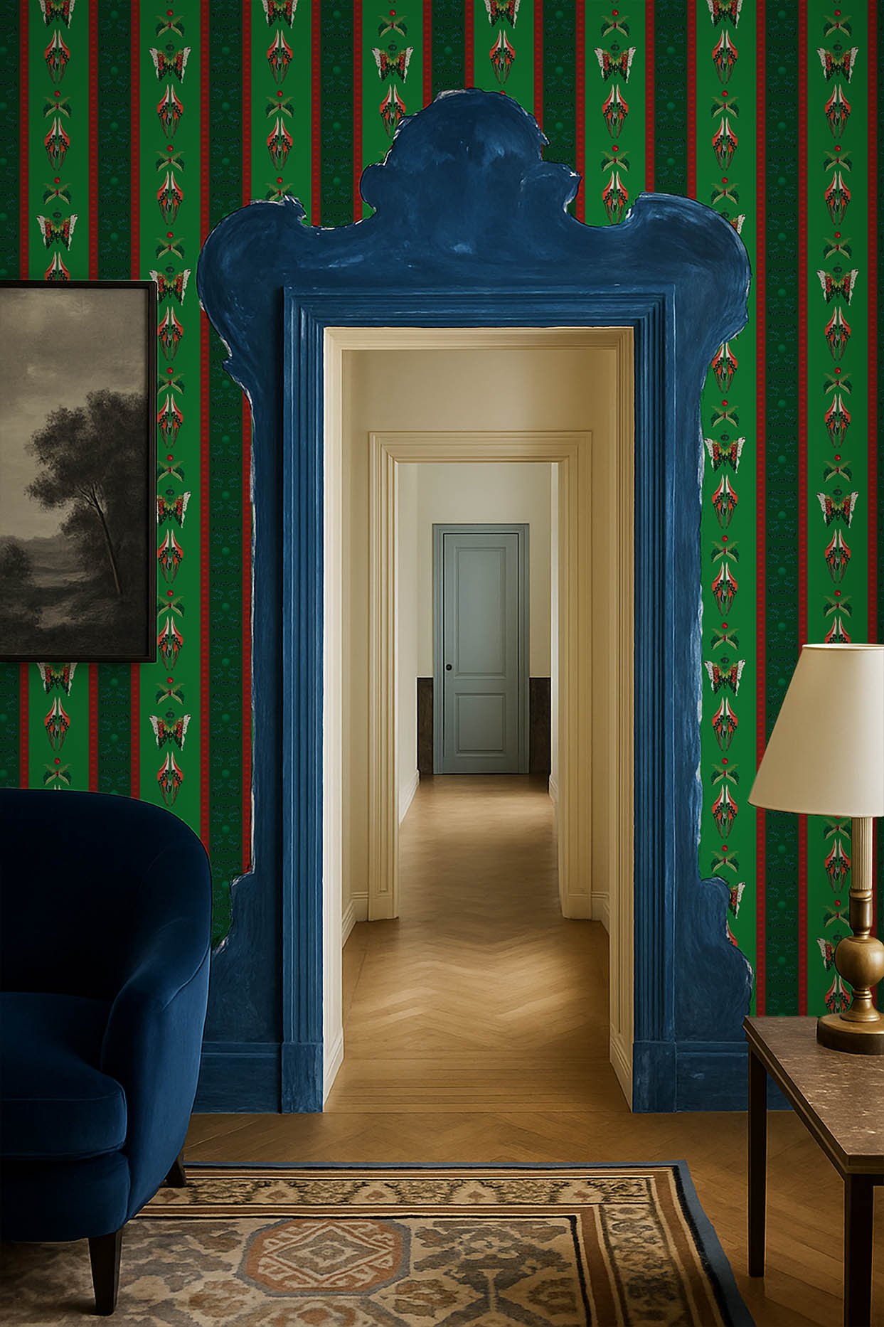 The wall becomes a ceremonial fabric, a totemic ornament, an expression of sensory elegance and visual power.