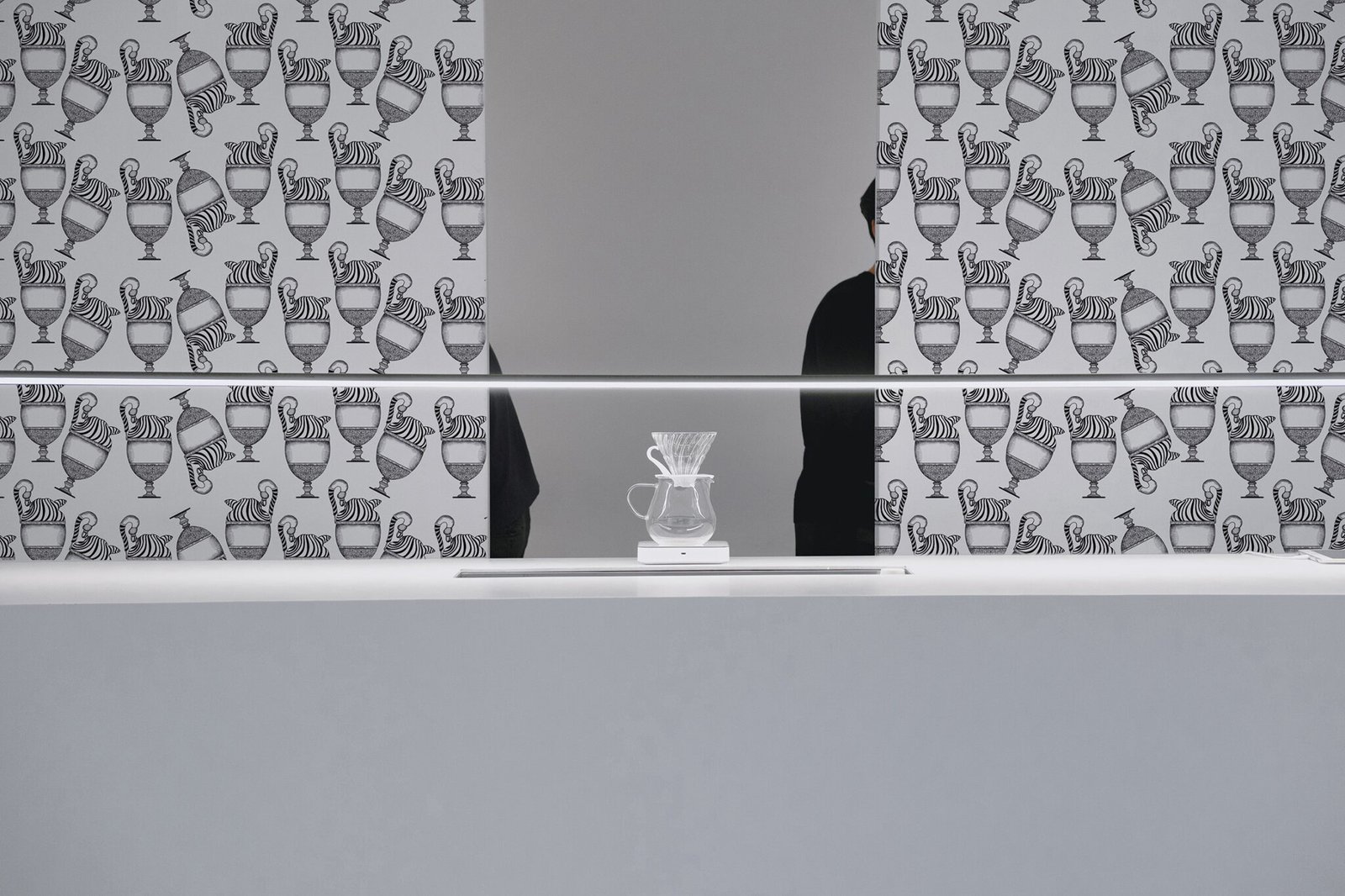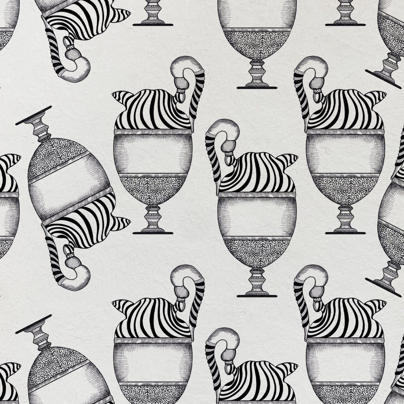 Fontana is a wallpaper that plays with the archetypal symbolism of the pitcher, transforming it into a pure graphic sign.