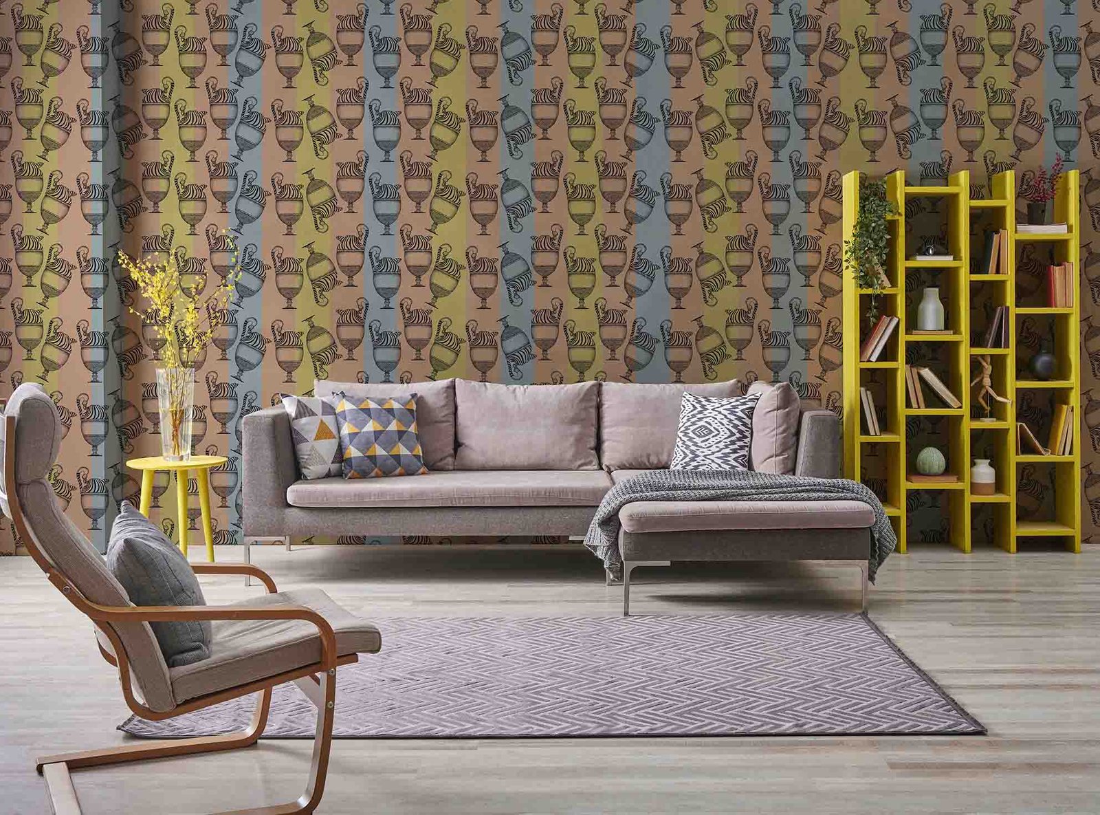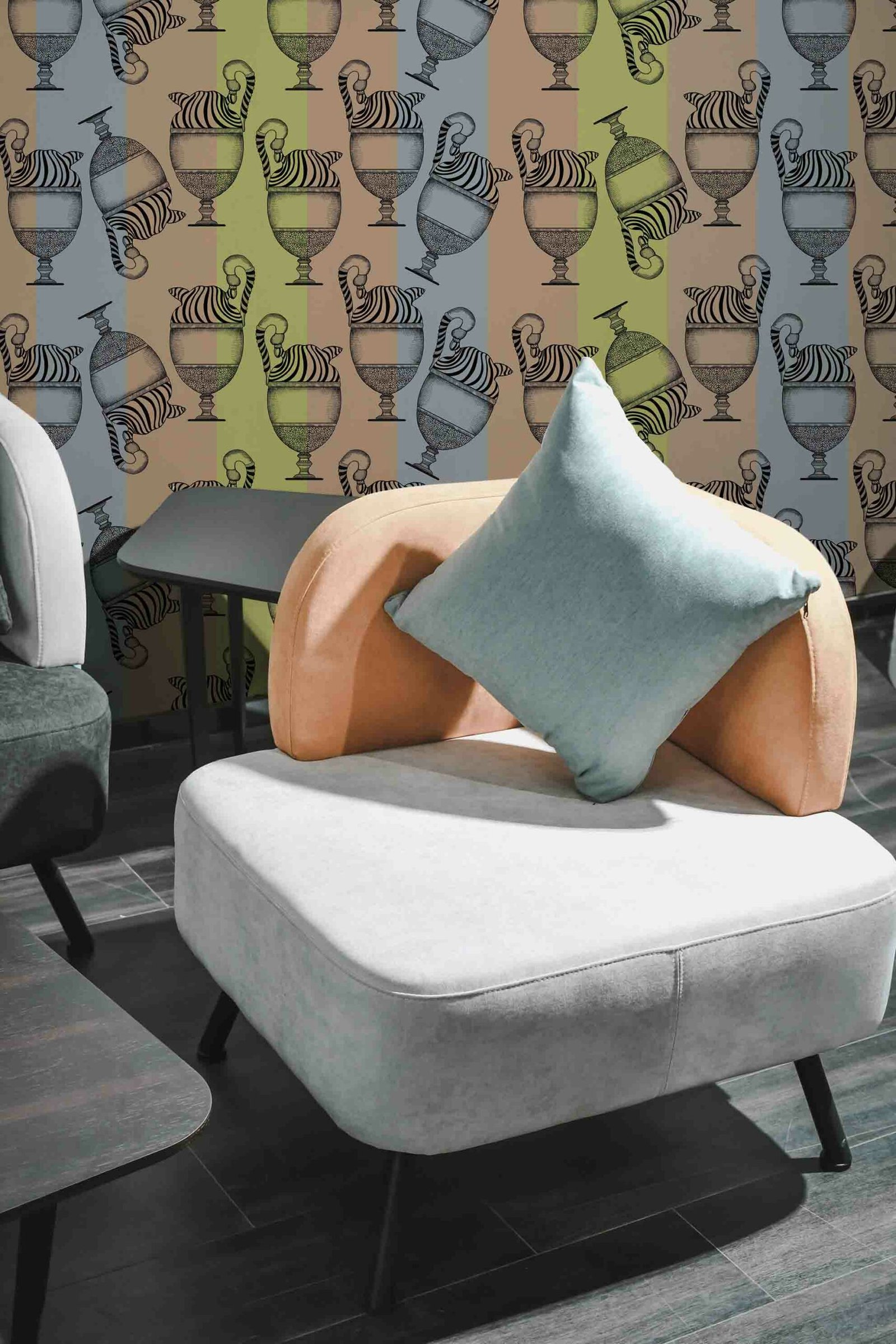 Repetition, rather than reassuring, disorients and amuses. The surface becomes a graphic theatre, retelling the same story in endlessly different ways. Fontana is the perfect wallpaper for those who love cultured yet playful surfaces, seeking conceptual elegance with a touch of irony.
