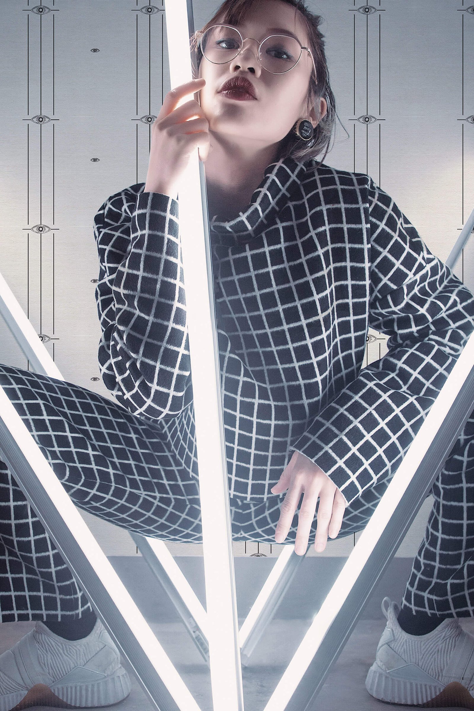 Drawn with fine black digital ink, the motif unfolds on an orderly, minimalist grid, where each gaze is set like a sacred visual structure.