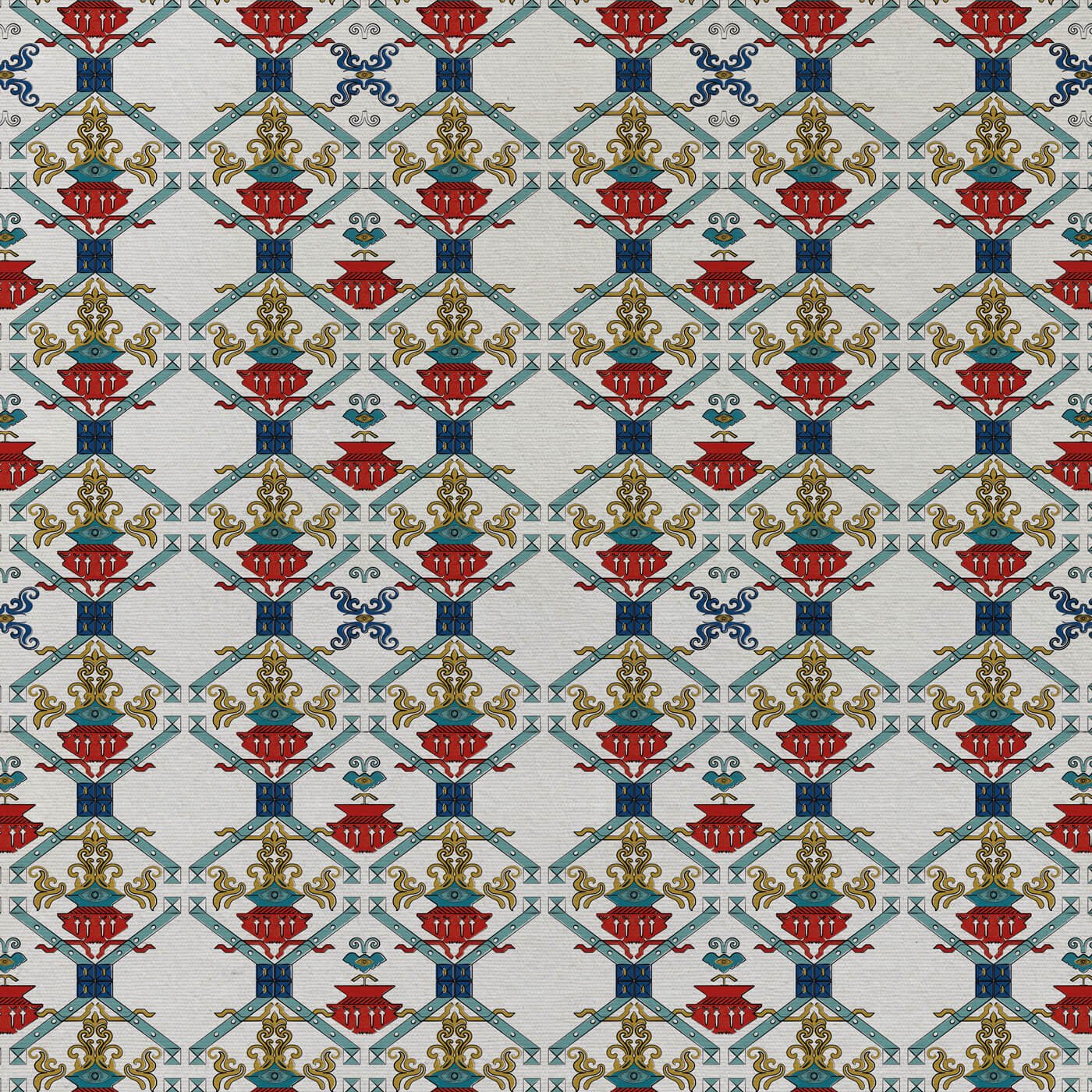 Ricamo is a pattern that transforms the wall into fabric: its modular geometry draws inspiration from ancient bridal blankets and votive tapestries, evoking a sense of visual order and narrative richness.