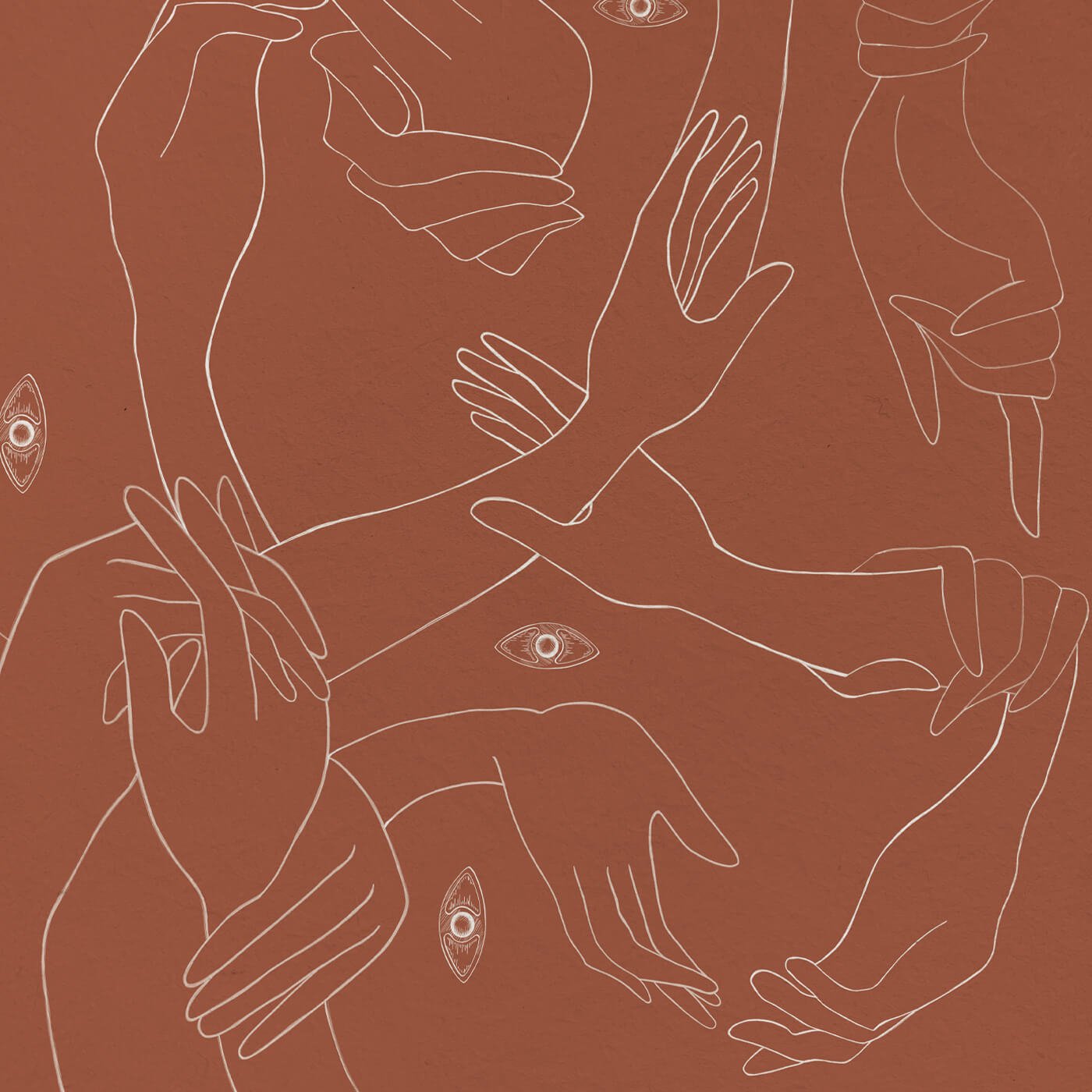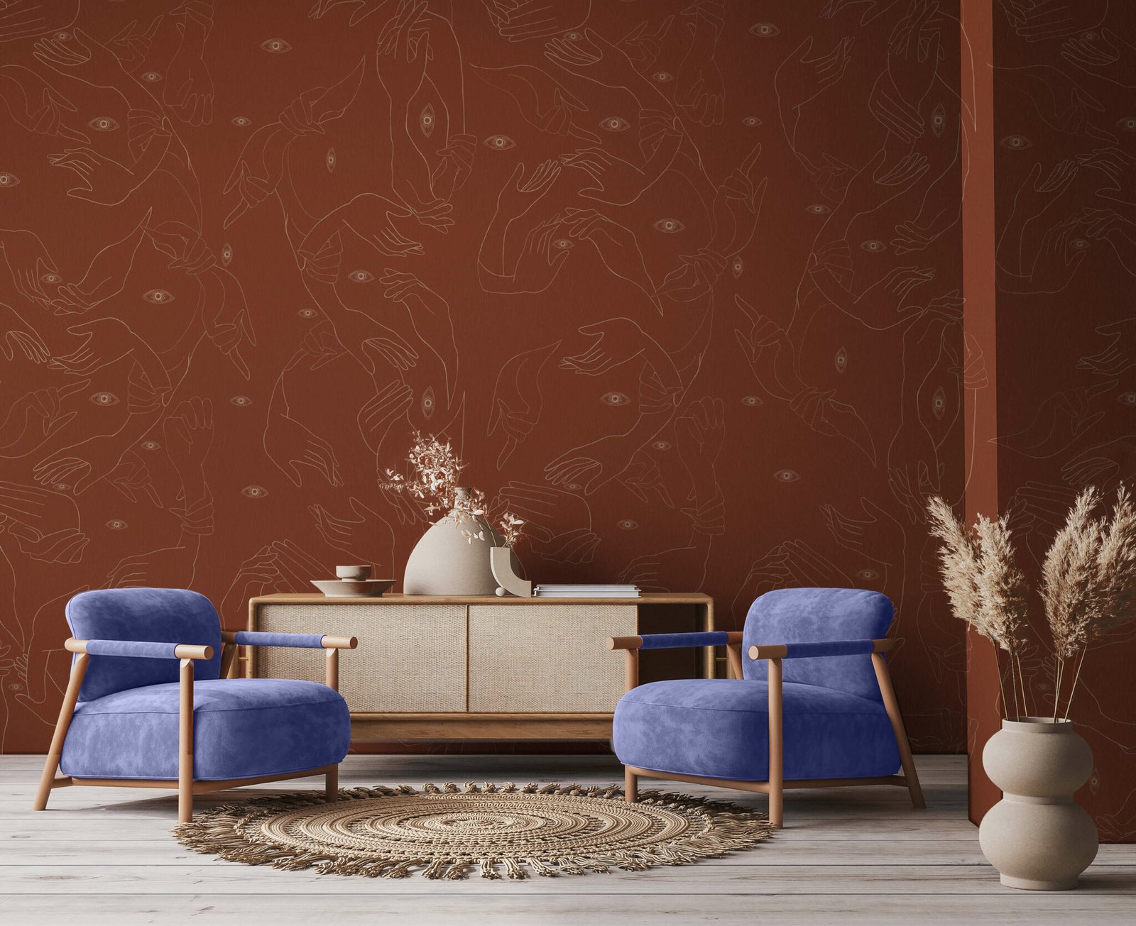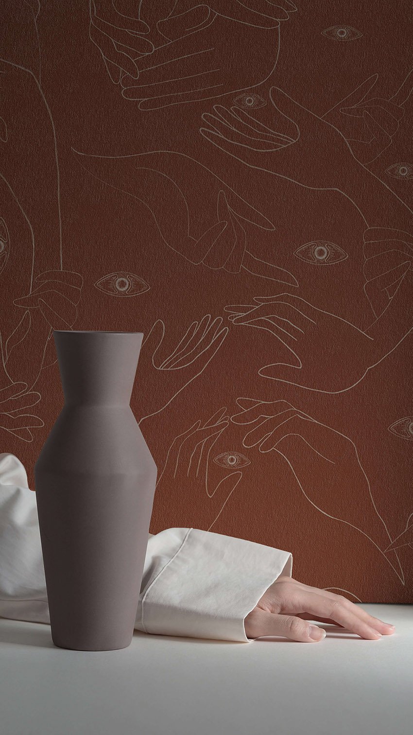 The Uno, Nessuno artistic wallpaper, designed by Marika Tardio for MaVoix, is a modular pattern where hands and eyes intertwine in an intimate, symbolic, and abstract choreography.