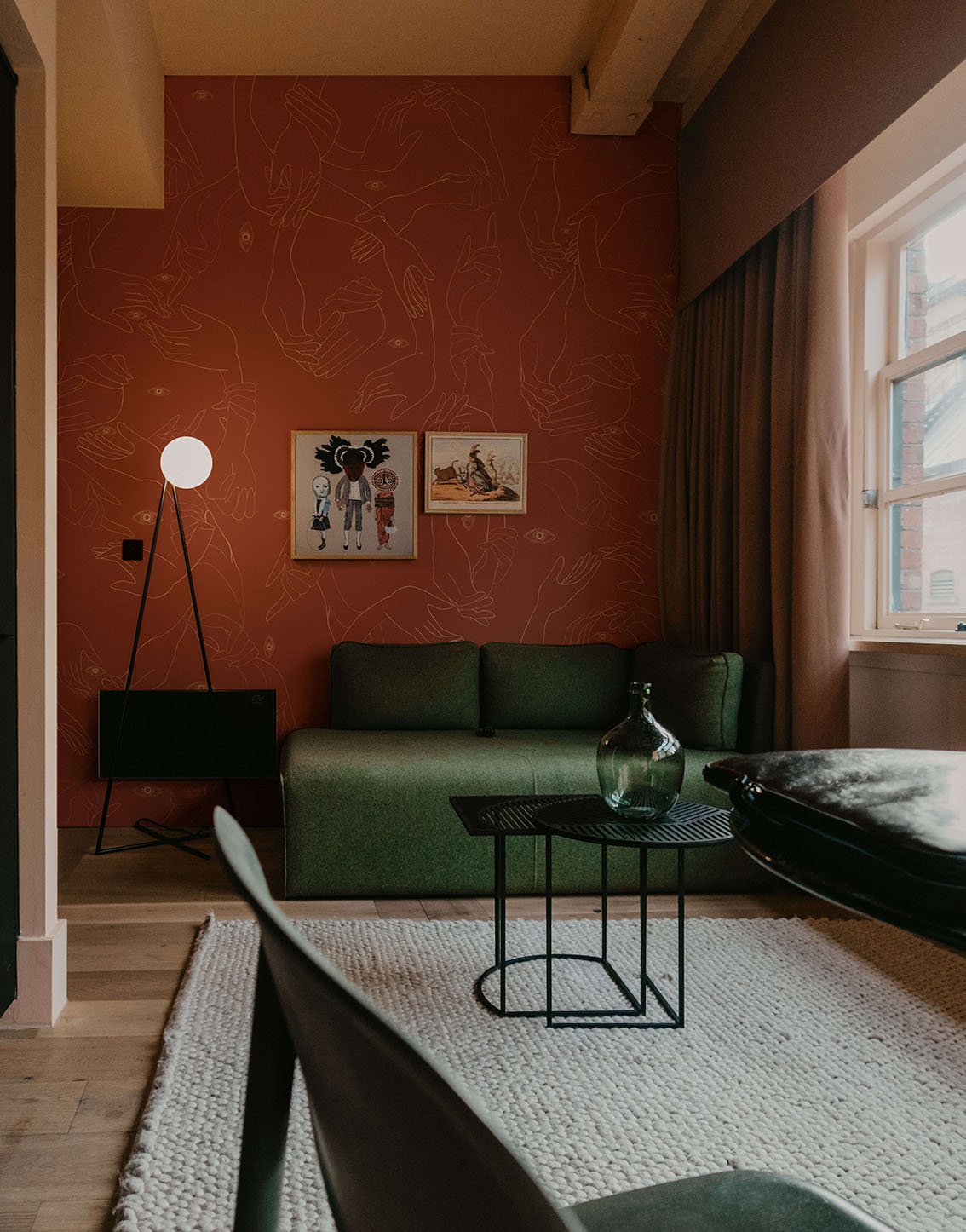 Uno, Nessuno Cannella is a wallpaper rich yet welcoming, a symbolic decoration with strong narrative power, ideal for meaningful interiors that aim to evoke intimacy, earth, and human warmth.