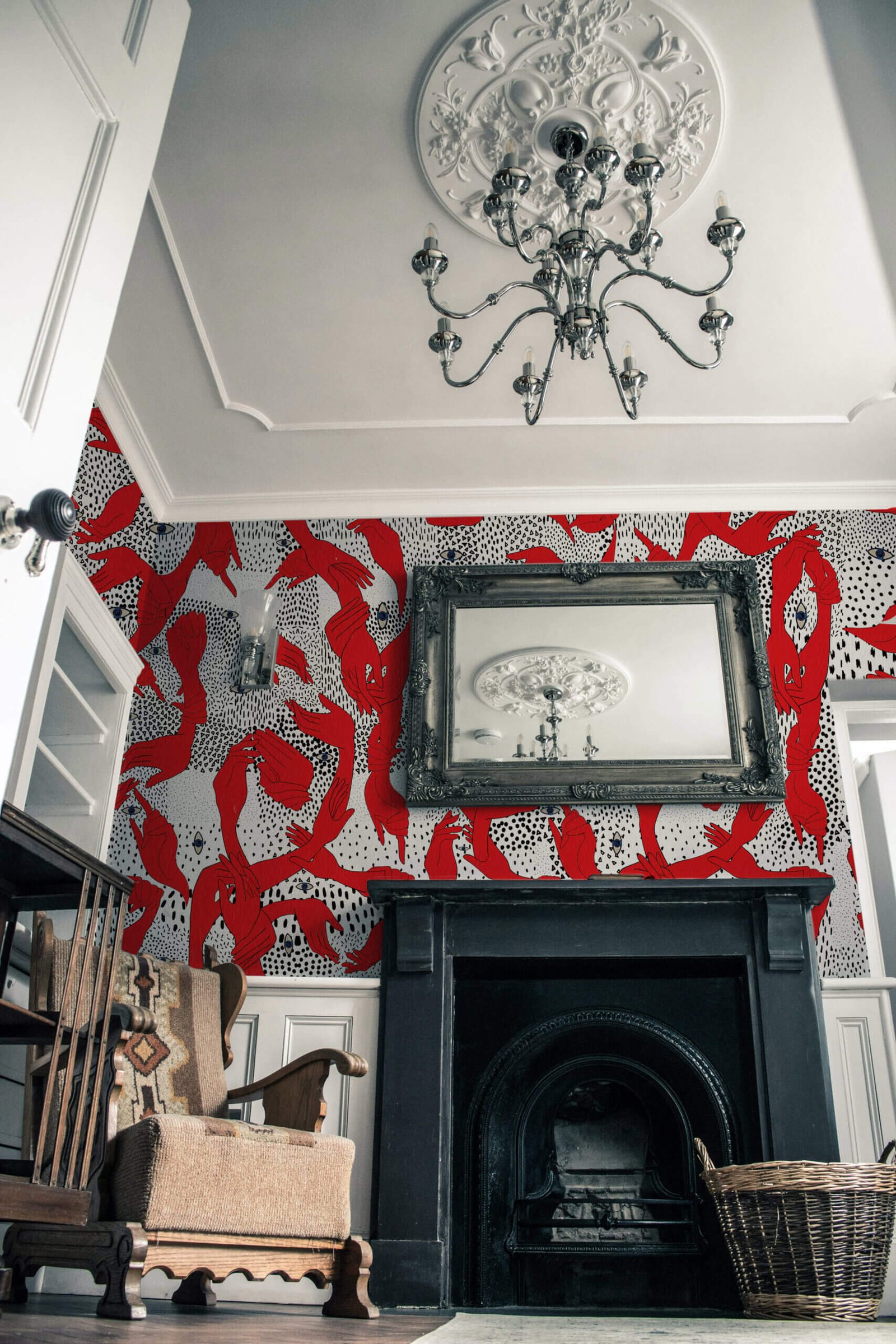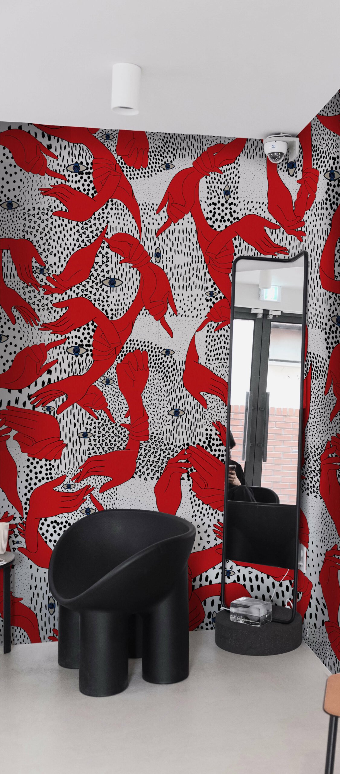This is a wallpaper that doesn’t merely decorate, but questions the space, animates it, and turns it into a story.