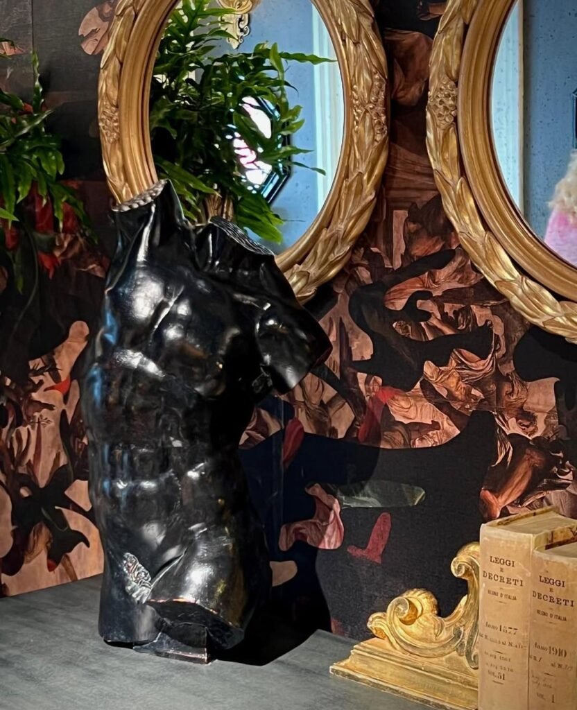 Nel suo stand — un ambiente ricercato, drammatico e profondamente immersivo — lo storico brand fiorentino unisce oggetti scultorei, complementi barocchi, finiture pregiate e un’attenzione maniacale ai dettagli.