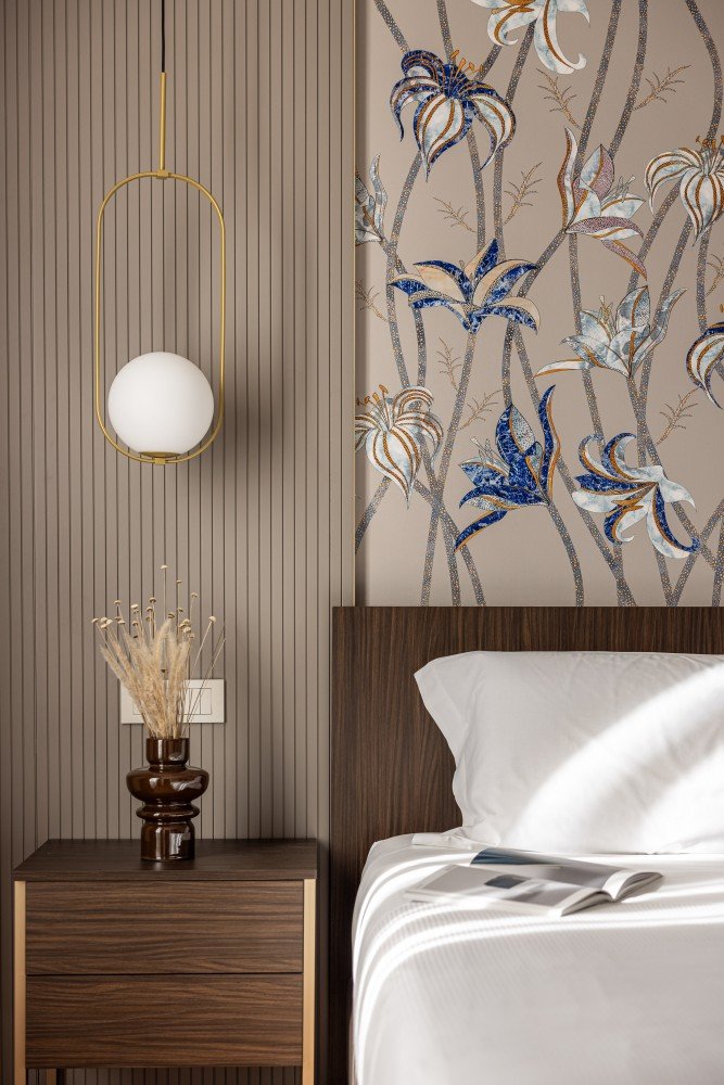 Un pattern poetico, leggero e insieme grafico, capace di introdurre un racconto visivo che accompagna l’atmosfera delle stanze.