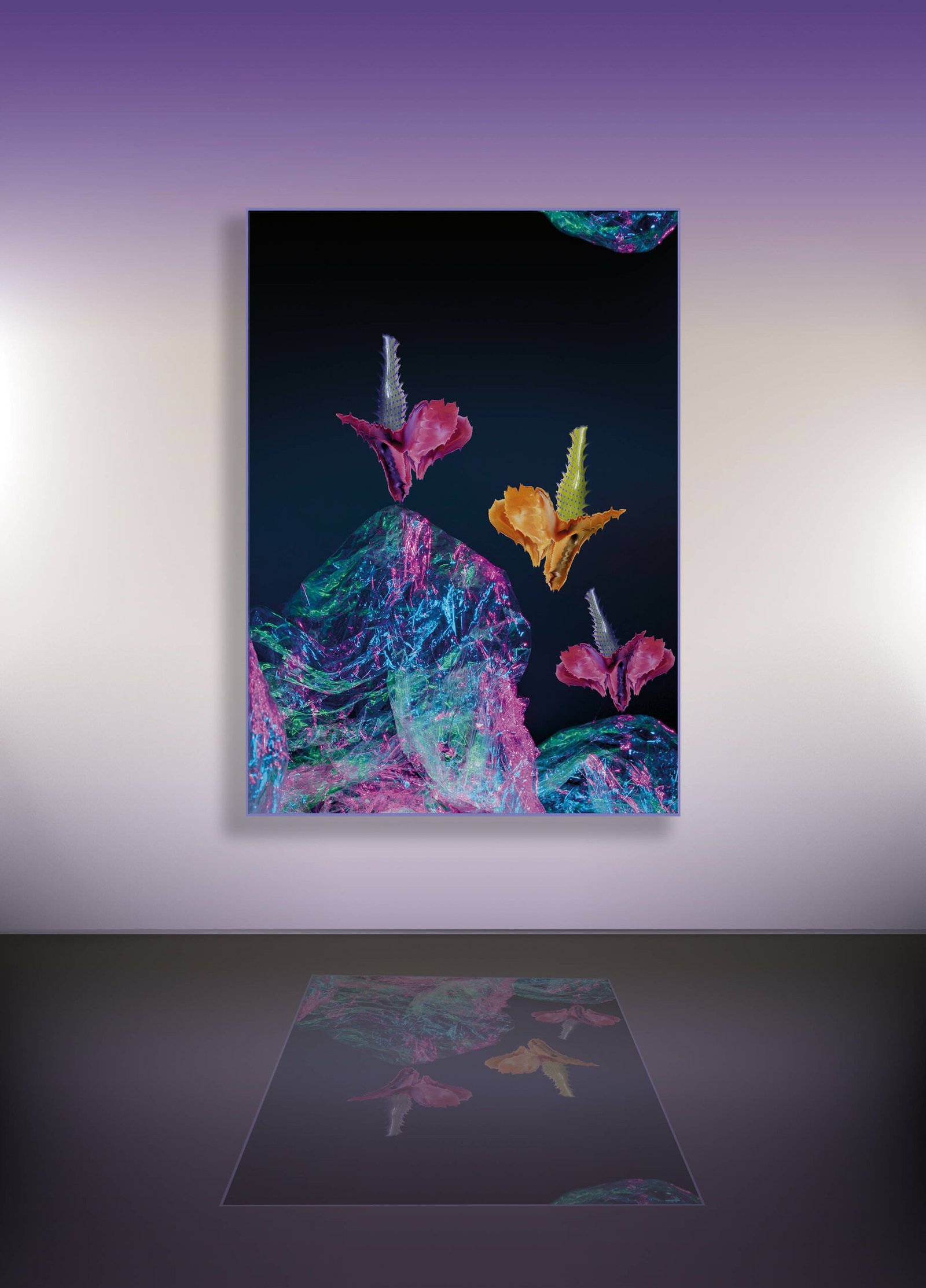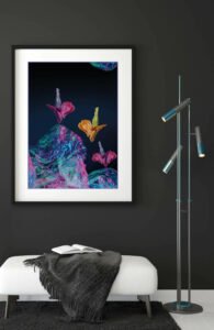 Stampata esclusivamente in qualità Fine Art, “Flower Jelly” è una wall art contemporanea di Marika Tardio, un’opera che fonde immaginazione tecnologica e materia poetica, restituendo un’immagine sospesa tra natura, artificio e sogno.